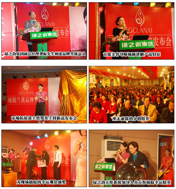 2008年3月16日,綠之韻·綠韻蘭茜品牌發(fā)布會在綠之韻集團(tuán)教育培訓(xùn)中心隆重舉行,前來參加2008綠之韻品牌建設(shè)年高峰論壇(第一場)的綠之韻方彤系統(tǒng)的460余名精英見證了這場以“同一個(gè)品牌,同一個(gè)夢想”為主題的發(fā)布會。綠之韻集團(tuán)董事長兼總裁胡國安先生、董事常務(wù)副總經(jīng)理勞嘉女士、副總經(jīng)理龔振先生、總裁助理兼首席美容導(dǎo)師楊穎女士、綠之韻集團(tuán)企業(yè)戰(zhàn)略發(fā)展顧問禹露先生出席發(fā)布儀式,并為綠韻蘭茜品牌揭幕。