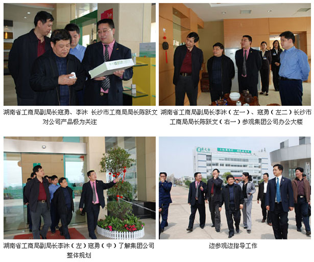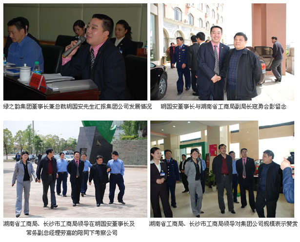 2007年4月11日,湖南省工商局副局長(zhǎng)寇勇、李沐,長(zhǎng)沙市工商局局長(zhǎng)陳躍文等帶領(lǐng)省、市工商局市場(chǎng)處、外資處、商標(biāo)廣告監(jiān)督管理處、注冊(cè)局等40余名領(lǐng)導(dǎo)深入湖南瀏陽(yáng)生物醫(yī)藥園,對(duì)公司進(jìn)行了調(diào)研考察。省、市工商局調(diào)研組一行首先在瀏陽(yáng)生物醫(yī)藥園管委會(huì)政務(wù)廳聽(tīng)取了瀏陽(yáng)工商局、管委會(huì)領(lǐng)導(dǎo)以及綠之韻集團(tuán)董事長(zhǎng)兼總裁胡國(guó)安先生的工作匯報(bào)。
