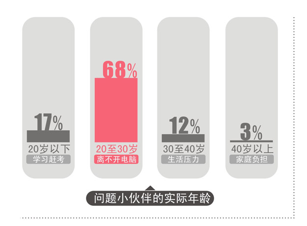 那么,這些電子產(chǎn)品占據(jù)了你每天生活的多少呢?據(jù)調(diào)查統(tǒng)計(jì),64%的人使用電子產(chǎn)品達(dá)到12小時(shí)以上,在辦公室用電腦,回家還要玩手機(jī)看電視;27%的人使用8-12小時(shí);5%的人使用4-8小時(shí);3%的人使用2-4小時(shí)。上到公司領(lǐng)導(dǎo),下到小職員,人人都需要面對(duì)手機(jī)、電腦,而這些產(chǎn)品卻對(duì)人的眼睛及肌膚產(chǎn)生著不可忽略的傷害。