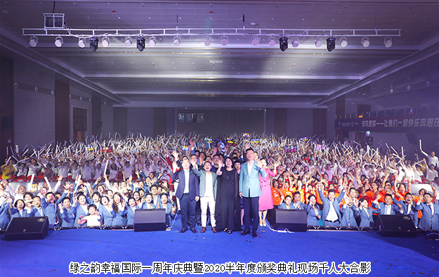 2020年6月21日,非凡的你——綠之韻幸福國際一周年慶典暨2020半年度頒獎典禮在集團總部國際會議中心成功舉行。綠之韻集團董事、總裁勞嘉,總經(jīng)理劉維利,執(zhí)行總經(jīng)理夏運良及高管團隊,與來自全國各地的1000余名綠之韻家人匯聚一堂,共襄盛舉。大會全程通過PC、移動端在線互動視頻直播,線上20000多人共同收看和分享了大會盛況。