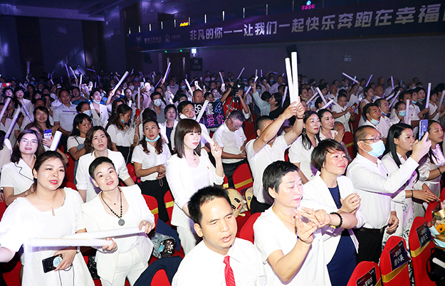 “關(guān)于理想,關(guān)于人生,最大的遺憾不是‘我做不到’,而是‘我本可以’。我深信,敢為的人生最精彩”。熱烈的掌聲中,綠之韻集團執(zhí)行總經(jīng)理夏運良登上舞臺作主題演講。他從“國家、企業(yè)和幸福代言人”三個維度系統(tǒng)地闡述了“非凡的你”的深刻涵義;從“文化、產(chǎn)品、培訓(xùn)、服務(wù)和活動”五個方面對綠之韻幸福國際破解幸福密碼進行了分析和總結(jié)。一年的時間,在綠之韻這個事業(yè)平臺上,幸福國際像一棵梧桐樹不斷地生長、扎根、壯大,不斷突破目標(biāo)、創(chuàng)造奇跡,是因為每一位幸福代言人腳踏實地、一步一個腳印干事業(yè)。他衷心希望,在未來通向幸福的道路上,每一位幸福代言人都能全力以赴,攜手前進,共同創(chuàng)造非凡未來!“一群人一條路,堅持一直走下去。在一起不容易,相守更加了不起。一群人一條心,再苦再累也愿意。在一起不容易,點亮生命不放棄?!痹凇恫环艞墶返囊魳仿曋?,現(xiàn)場家人們齊聲合唱,感動、感恩、幸運、幸福交織融匯,大會氣氛到達最高潮……