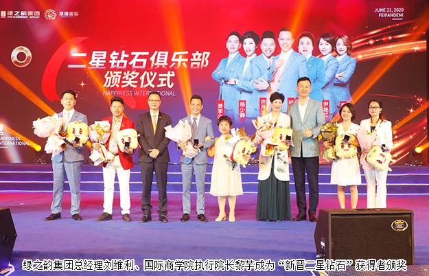 他們,用生命捍衛(wèi)夢想,用眼光預(yù)見未來,用胸襟包容所有,每一個奮斗的身影都閃耀出王者的光芒。綠之韻集團副總裁胡均安、綠之韻國際商學(xué)院副院長侯俊霞,綠之韻集團總經(jīng)理劉維利、綠之韻國際商學(xué)院執(zhí)行院長黎芋成,綠之韻集團董事總裁勞嘉、執(zhí)行總經(jīng)理夏運良分別為“新晉一星、二星、三星鉆石”獲得者頒獎,并致以祝賀。幸福代言人鄭堅宏、張秀花伉儷,鄭富文、陳國家、廖鵬分享獲獎感言。