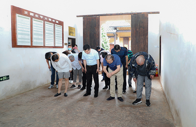 隨后,黨員一行來到了王震將軍故居參觀?!盀閲?guó)開基,將軍百戰(zhàn)彪青史;畢生革命,桑梓千秋仰大名?!边@一幅掛在故居門前的對(duì)聯(lián)是對(duì)王震將軍波瀾壯闊的一生的最好詮釋。在講解員的帶領(lǐng)下,黨員一行詳細(xì)了解了王震將軍的生平事跡,并在王震將軍畫像前敬獻(xiàn)花籃,行鞠躬禮,深情表達(dá)對(duì)革命先烈崇高的敬意。