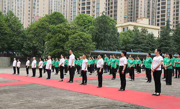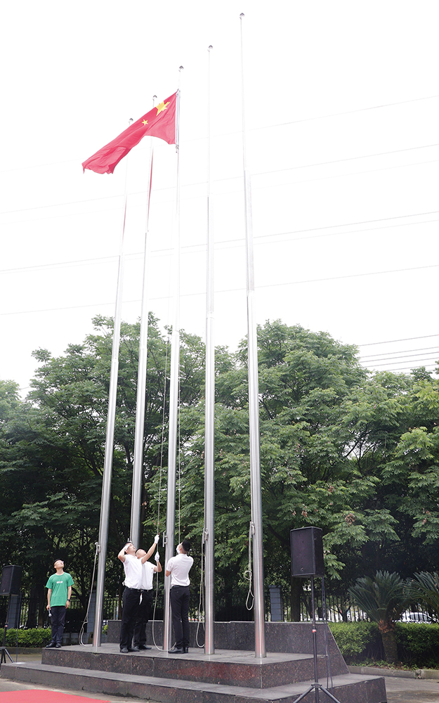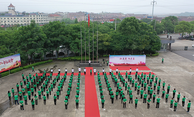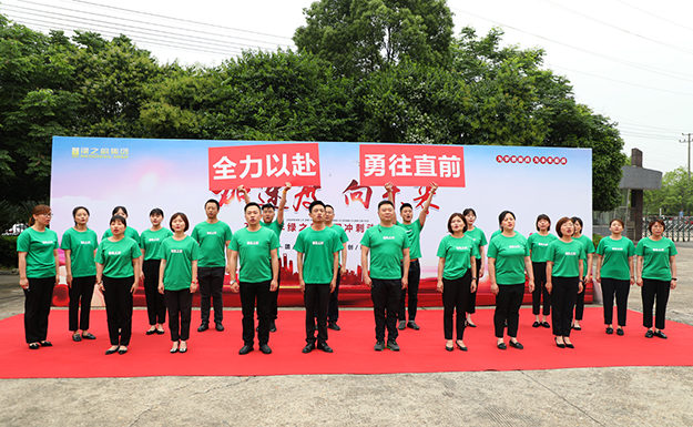一曲激昂澎湃的《綠韻飛揚(yáng)》拉開了動員大會序幕。在集團(tuán)公司前坪,全體綠之韻人統(tǒng)一著裝、整齊列隊(duì)迎接升旗儀式暨動員大會。伴隨著莊嚴(yán)雄壯的國歌聲,鮮艷的五星紅旗冉冉升起,綠之韻家人向國旗行注目禮,內(nèi)心激蕩著對偉大祖國的熱愛和崇敬。