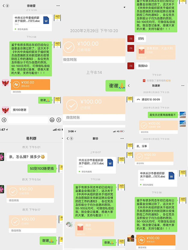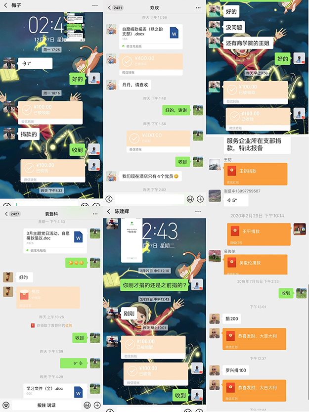 為打贏疫情防控阻擊戰(zhàn),積極響應(yīng)黨中央對廣大黨員的號召,3月4日,綠之韻集團(tuán)黨委組織廣大黨員同志,自愿捐款支持新冠肺炎疫情防控工作。此次捐款尊重黨員意愿,堅(jiān)持自覺自愿、量力而行,不提硬性要求,不搞強(qiáng)迫命令,普通黨員捐款一般不超過100元,倡導(dǎo)黨員同志根據(jù)實(shí)際情況表達(dá)愛心。廣大黨員同志接到捐款倡議后,踴躍參與,在現(xiàn)場根據(jù)文明“一米線”原則進(jìn)行捐款,在家中值守和線上輪班的黨員通過微信轉(zhuǎn)賬的方式進(jìn)行捐款。