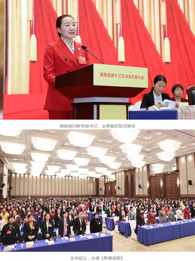 閉幕式上,大會宣布了新當選的省婦聯第十三屆主席、副主席,常務委員名單,通過了《關于湖南省婦聯第十二屆執(zhí)行委員會報告的決議》(草案)。姜欣當選湖南省婦聯第十三屆主席。中共湖南省委常委、省人民政府常務副省長謝建輝代表省委向新當選的省婦聯領導班子表示熱烈祝賀。她希望,新一屆省婦聯領導班子立足新起點,搶抓新機遇,團結帶領廣大婦女開拓進取、扎實工作,奮力譜寫湖湘婦女事業(yè)發(fā)展新篇章。大會在全體婦女代表共同合唱《歌唱祖國》的歌聲中落下帷幕。