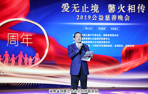 晚會(huì)伊始,湖南省慈善總會(huì)會(huì)長(zhǎng)段林毅致辭。他首先對(duì)長(zhǎng)期關(guān)心支持湖南慈善公益事業(yè)發(fā)展的各位領(lǐng)導(dǎo)、企業(yè)家朋友表示衷心的感謝和崇高的敬意。多年來(lái)慈善總會(huì)匯聚全省的愛心力量,嚴(yán)格落實(shí)省委省政府打好脫貧攻堅(jiān)戰(zhàn)的戰(zhàn)略部署,聚焦扶貧攻堅(jiān),聚焦特殊群眾 ,堅(jiān)持慈善厚德,努力做好慈善捐助、慈善救助的工作。2019年,全省各級(jí)慈善機(jī)構(gòu)共募集愛心款物超15億元,先后幫助困難群眾達(dá)600多萬(wàn)人次。慈善公益事業(yè)是一項(xiàng)偉大的事業(yè),將與時(shí)代發(fā)展同頻共振,需要社會(huì)各界大力的參與和支持。他呼吁,全省廣大公益組織、企業(yè)界愛心朋友、社會(huì)愛心人士能更加踴躍積極投身到公益事業(yè)中,匯聚湖南力量,創(chuàng)造湖南慈善事業(yè)新成就,為打好脫貧攻堅(jiān)戰(zhàn)、全面建成小康社會(huì),實(shí)現(xiàn)中華民族偉大復(fù)興的中國(guó)夢(mèng)貢獻(xiàn)力量。
