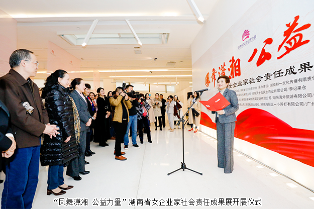 2019年11月27日,由湖南省婦聯(lián)指導(dǎo)、湖南省女企業(yè)家協(xié)會(huì)主辦的“鳳舞瀟湘 公益力量”湖南省女企業(yè)家社會(huì)責(zé)任成果展在梅溪書院啟動(dòng)。湖南省人大常委會(huì)原副主任顏永盛,省婦聯(lián)黨組書記、主席姜欣,省婦聯(lián)黨組成員、副主席張媛媛,省婦聯(lián)原副主席魯華,長沙市婦聯(lián)黨組書記、主席文方,省民政廳社會(huì)組織管理局調(diào)研員龍吉士,省婦女發(fā)展部部長陳敏,省婦聯(lián)婦女發(fā)展部副部長鐘波,湖南衛(wèi)視著名主持人張丹丹,湖南省女企業(yè)家協(xié)會(huì)會(huì)長張海霞,湖南省女企業(yè)家協(xié)會(huì)副會(huì)長、綠之韻集團(tuán)董事總裁、綠之韻公益基金會(huì)理事長勞嘉以及來自湖南省近300名女企協(xié)會(huì)員代表、嘉賓出席活動(dòng)。