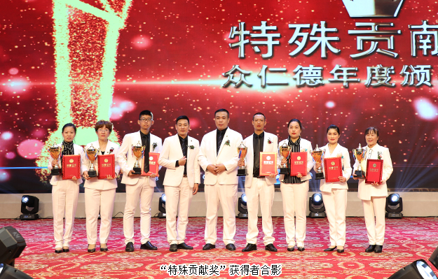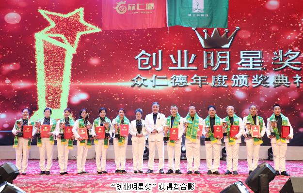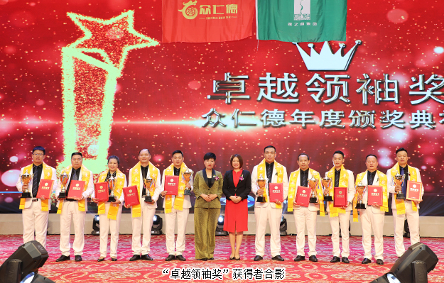 大會還舉行了盛大的頒獎儀式,為取得優(yōu)異成績的市場精英予以表彰?!伴_拓先鋒獎”“創(chuàng)業(yè)明星獎”“最佳成長獎”“特殊貢獻獎”“卓越領(lǐng)袖獎”等獎項依次頒發(fā)。綠之韻集團副總經(jīng)理梅其慧、市場管理中心業(yè)務(wù)總經(jīng)理曹兵、市場管理中心業(yè)務(wù)總監(jiān)譚紅和綠之韻眾仁徳系統(tǒng)創(chuàng)始人孟鈺潔與眾仁徳優(yōu)秀領(lǐng)導(dǎo)人上臺為獲獎的優(yōu)秀精英頒獎并送上祝福。