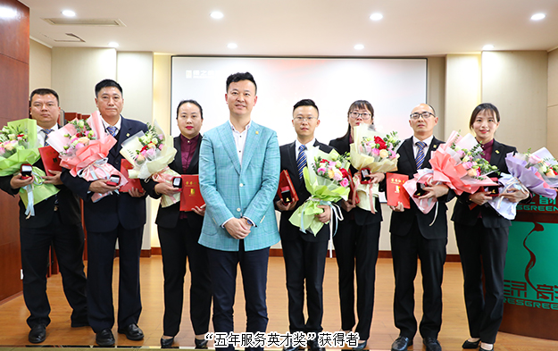 2019年10月18日,綠之韻集團第三季度員工大會暨五年服務(wù)英才獎、十年服務(wù)忠誠獎頒發(fā)儀式成功舉行。綠之韻集團董事長胡國安、董事總裁勞嘉攜集團高管及全體員工參加會議。
