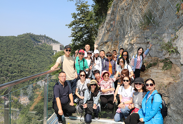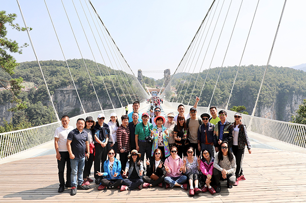 為期四天的交流活動中,胡國安董事長全程陪同朱沃裕一行先后考察了天門山、黃龍洞、袁家界、大峽谷玻璃橋、寶峰湖、鳳凰古城等著名的景區(qū)景點(diǎn)。白天縱覽“奇峰三千秀水八百”,晚上欣賞純正濃郁民族風(fēng)味的《魅力湘西》,走進(jìn)了湘西古老神秘文化的最深處。親身體驗(yàn)唱山歌、飲攔門酒、哭嫁等苗族風(fēng)俗,體驗(yàn)“神秘湘西、茶富古丈"的氣息與魅力。