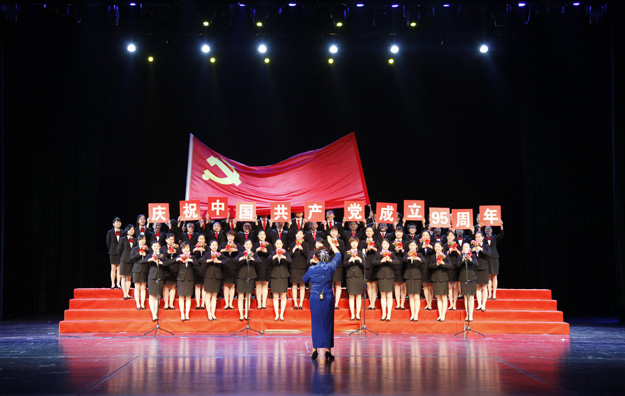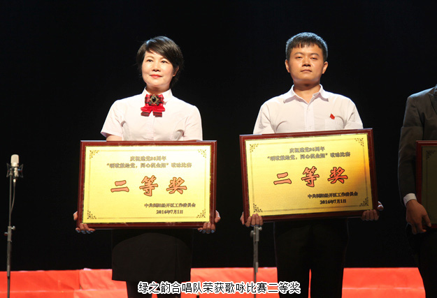 大會最令人熱血沸騰的環(huán)節(jié)是慶祝建黨95周年歌詠比賽的舉辦?!陡璩鎳?、《唱支山歌給黨聽》、《黨啊,親愛的媽媽》等一支支弘揚(yáng)偉大祖國繁榮昌盛的主旋律在金陽唱響。綠之韻合唱隊(duì)在集團(tuán)黨總支帶領(lǐng)下以飽滿的熱情和嘹亮的歌聲表演了《四渡赤水出奇兵》,積極進(jìn)取、奮發(fā)向上的精神風(fēng)貌感染了現(xiàn)場每一個人,并最終榮獲歌詠比賽二等獎。