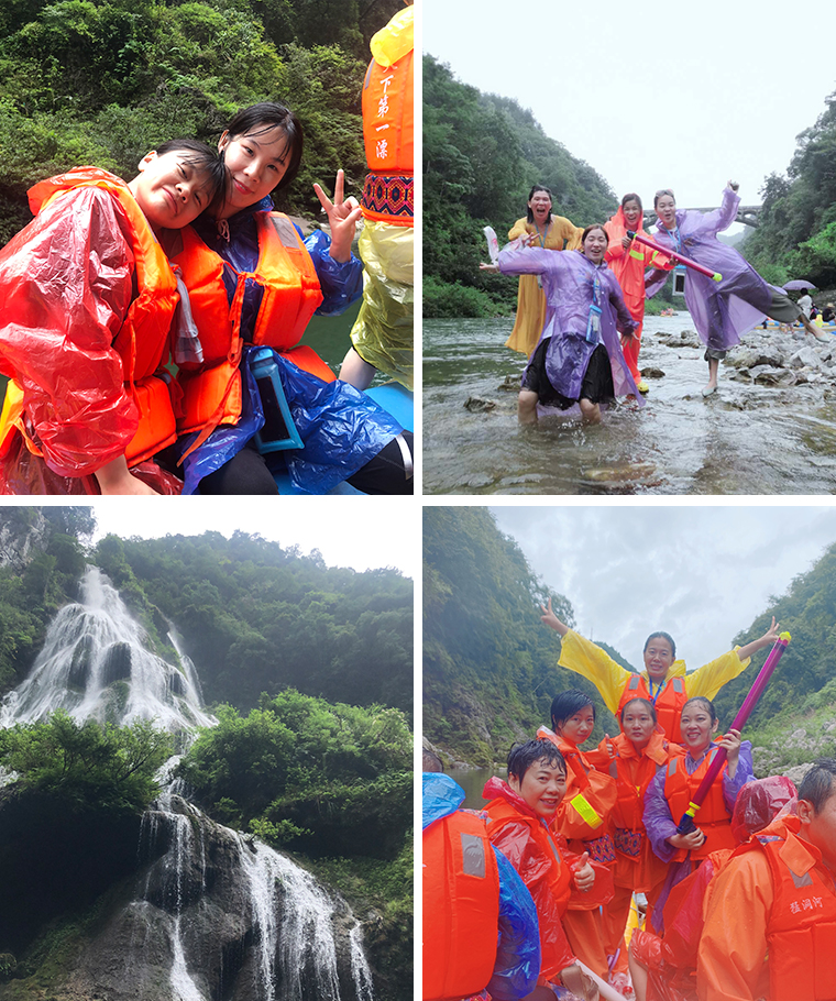 “張家界看山,猛洞河玩水?!痹诿投春?,綠之韻家人們乘坐著小筏,從“哈妮宮”出發(fā),順水而下,一葉扁舟,在原始次生林的高山峽谷之中,身著救身衣、乘皮舟、闖險灘、博激流、沿途觀美景、沐瀑流、打水仗、過峽關,出沒浪端谷底,途經三角巖、雞籠門、捏土瀑布、閻王灘、落水坑瀑布、夢思峽等數十個景點,兩岸秀麗的風光無不令人叫絕觀止。家人們在漂流途中放歌長嘯,或搏浪闖灘,或戲水嬉鬧,找回快樂童真的自我。