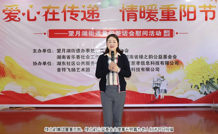歲歲重陽(yáng),今又重陽(yáng)。為進(jìn)一步弘揚(yáng)敬老孝親的文明德尚之風(fēng),2020年10月24日,綠之韻集團(tuán)董事總裁、綠之韻公益基金會(huì)理事長(zhǎng)勞嘉,綠之韻集團(tuán)黨委書(shū)記、綠之韻公益基金會(huì)副理事長(zhǎng)劉云帶領(lǐng)愛(ài)心志愿者參加在長(zhǎng)沙舉行的重陽(yáng)節(jié)主題茶話會(huì)慰問(wèn)活動(dòng)。會(huì)上,勞嘉理事長(zhǎng)代表綠之韻公益基金會(huì)捐資10萬(wàn)元用于關(guān)愛(ài)老人公益項(xiàng)目,為獨(dú)居老人、重疾高齡老人、計(jì)生特殊家庭和貧困家庭送去一份節(jié)日的溫暖。