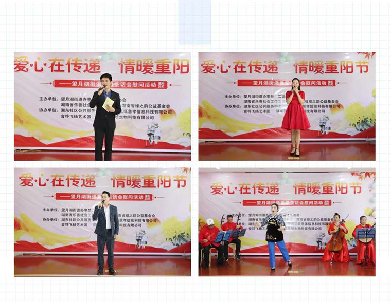 經(jīng)過(guò)前期的悉心籌劃,本次重陽(yáng)節(jié)茶話會(huì)為受邀居民呈現(xiàn)了一場(chǎng)溫馨歡樂(lè)的舞臺(tái)盛宴:熱烈開(kāi)場(chǎng)的《夢(mèng)回乾坤灣》歌曲獨(dú)唱、輕松熱鬧的花鼓戲《劉大娘笑呵呵》、情景劇表演《百善孝為先》、風(fēng)情舞蹈《草原上升起不落的太陽(yáng)》……除了慰問(wèn)演出,老人們自己精心準(zhǔn)備了才藝節(jié)目,悠揚(yáng)的旋律,動(dòng)人的演繹,地方味兒十足的特色演出增加了節(jié)日的幸福感。勞嘉理事長(zhǎng)、劉云書(shū)記以及綠之韻愛(ài)心志愿者與老人們團(tuán)聚在一起觀看表演、拉家常,現(xiàn)場(chǎng)歌聲、掌聲、歡笑聲不斷。