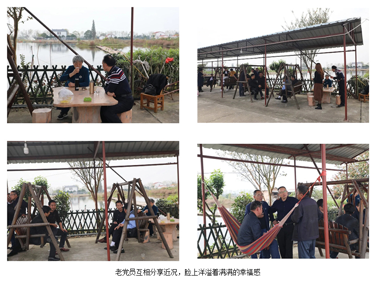 上午十時許,綠之韻黨團(tuán)成員驅(qū)車近2個小時來到湘陰縣鶴龍湖。在鶴龍湖邊的涼亭里,綠之韻黨團(tuán)成員與老黨員們?nèi)宄扇簢谝黄?,一邊喝茶一邊聽老黨員們分享自己過去的奮斗故事,并詳細(xì)詢問老黨員的生活情況和身體狀況,叮囑他們要好好保重身體。在了解了老黨員們?yōu)辄h的各項事業(yè)做出的積極貢獻(xiàn)后,青年黨員紛紛表示要以老黨員們?yōu)榘駱?,學(xué)習(xí)他們的優(yōu)良傳統(tǒng)和作風(fēng),認(rèn)真做好本職工作,做時代的奉獻(xiàn)者,奮斗者。