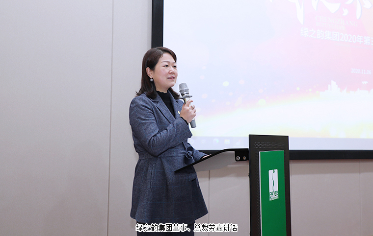 隨后,綠之韻集團(tuán)董事、總裁勞嘉講話。她表示,今年是綠之韻成立十八周年,能夠一路走下來,并取得各項成績,得益于這些五年、十年獎項獲得者的相信、堅持和奉獻(xiàn),得益于在座各位高管和員工的不懈拼搏和辛勤付出。她從重塑崗位和職業(yè)價值、增強(qiáng)工作有效性、提升解決問題能力、提振未來發(fā)展信心等四個方面娓娓道來,語重心長。她強(qiáng)調(diào),綠之韻可以給到每一位員工發(fā)展的舞臺,只要我們沉下心來學(xué)習(xí),不斷創(chuàng)新工作模式,不斷提高每一個人解決實際問題的能力,當(dāng)我們足夠優(yōu)秀,我們就能在這里實現(xiàn)每一個人的自身價值。這次疫情雖然對我們的企業(yè)有一定的影響,但是從國家層面來看,隨著《“健康中國2030”規(guī)劃綱要》的發(fā)布,當(dāng)前“國民健康”的重視程度前所未有,給我們繼續(xù)投身大健康產(chǎn)業(yè)一劑“強(qiáng)心劑”。從公司層面來看,目前,公司各個市場板塊在調(diào)整和融合,向著好的方向發(fā)展?!拔鹜蛱斓目嚯y輝煌,無愧今天的使命擔(dān)當(dāng),不負(fù)明天的偉大夢想?!焙笠咔闀r代,明年或許會更艱難,但大家要對企業(yè)未來的發(fā)展充滿信心。希望可以看到更多的員工走上公司五年、十年的榮耀舞臺,肩負(fù)使命、創(chuàng)造輝煌,不負(fù)青春、不負(fù)遇見、不負(fù)夢想。