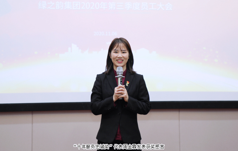 11月6日,綠之韻集團(tuán)2020年第三季度員工大會暨五年服務(wù)英才獎、十年服務(wù)忠誠獎頒發(fā)儀式成功舉行。綠之韻集團(tuán)董事長胡國安、董事總裁勞嘉攜集團(tuán)高管及全體員工參加會議。