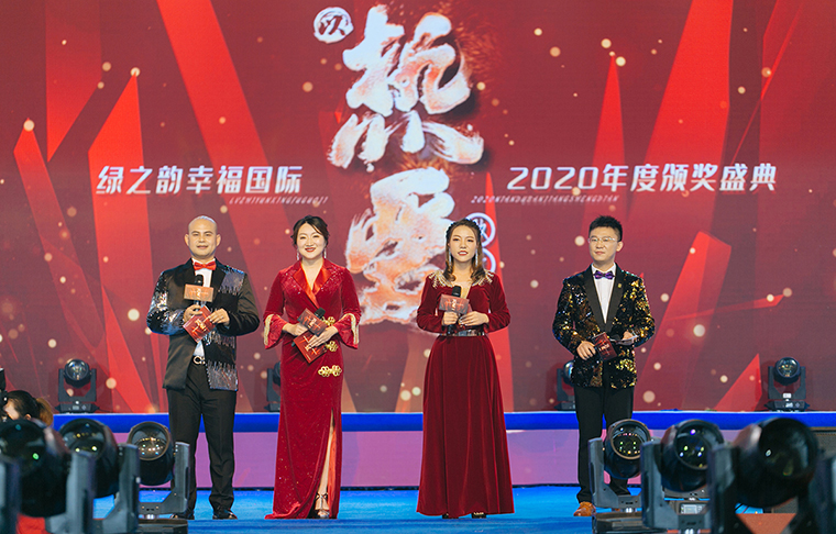 2020年12月28日,以熱愛·致幸?!G之韻幸福國際2020年度頒獎盛典盛大舉行。綠之韻集團(tuán)董事長胡國安,董事、總裁勞嘉,副總裁胡均安,執(zhí)行總經(jīng)理夏運(yùn)良,綠之韻國際商學(xué)院執(zhí)行院長黎芋成,綠之韻集團(tuán)黨委書記劉云,綠之韻集團(tuán)市場運(yùn)營中心副總經(jīng)理李定,綠之韻國際商學(xué)院副院長侯俊霞、教育總監(jiān)陳敏,以及特邀嘉賓駱春崗等領(lǐng)導(dǎo)出席活動,與來自全國各地的1000余名綠之韻家人匯聚一堂,共襄盛舉。大會全程通過PC、移動端在線互動視頻直播,線上近100000人共同收看和分享了大會盛況。