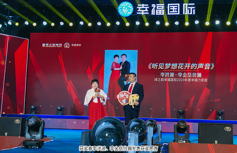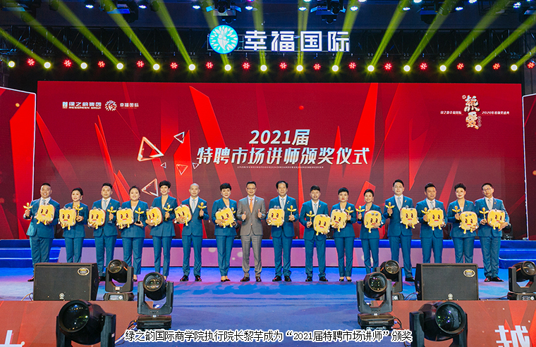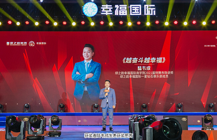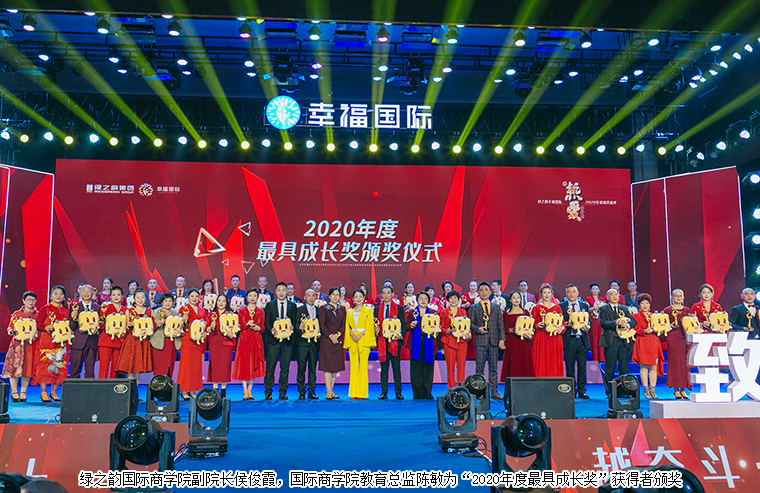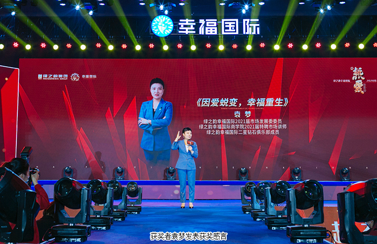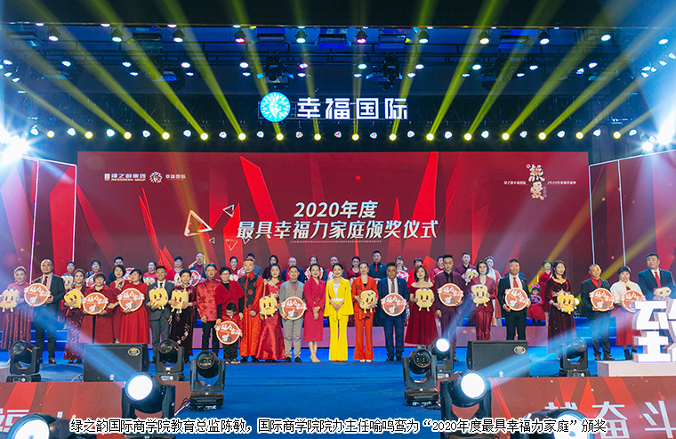 在現(xiàn)場千余名綠之韻幸福國際家人們的見證下,大會舉行了盛大的頒獎儀式。綠之韻國際商學(xué)院執(zhí)行院長黎芋成,國際商學(xué)院副院長侯俊霞,國際商學(xué)院教育總監(jiān)陳敏,國際商學(xué)院院辦主任喻鳴鸞為“2020年度最具幸福力家庭”“2020年度最具成長獎”“2021屆特聘市場講師”頒獎。獲獎?wù)呃詈椴?、李金岳伉儷、石雷、尹艷紅發(fā)表獲獎感言。