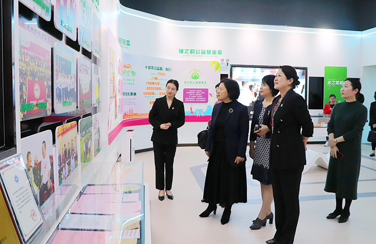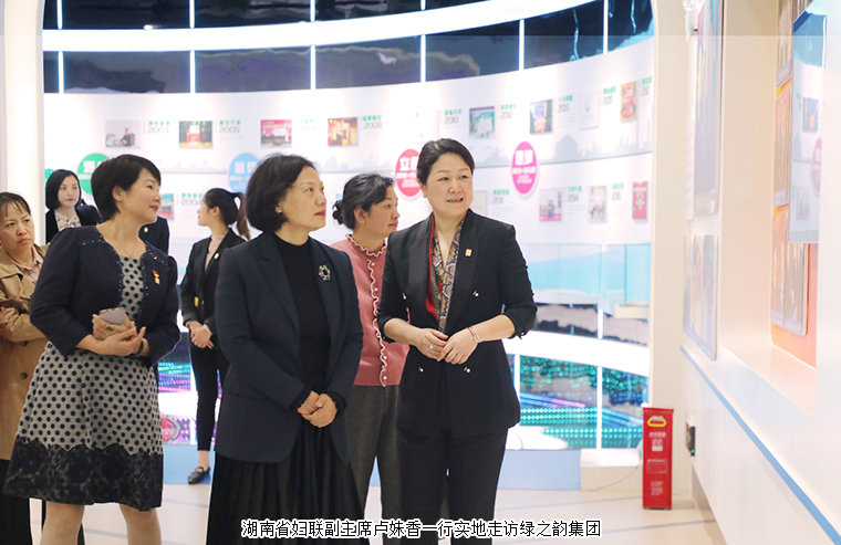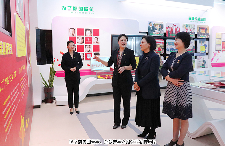 隨后,湖南省婦聯(lián)副主席盧妹香一行來到綠之韻國際會議中心多功能展廳實地走訪和參觀,勞嘉總裁就企業(yè)基本情況、生產(chǎn)經(jīng)營、文化建設(shè)以及黨建公益等方面的工作情況做了詳細(xì)介紹。湖南省婦聯(lián)副主席盧妹香對綠之韻多年來在“關(guān)愛女性 崇德向善”方面的積極作為以及具有綠之韻品牌特色的“綠體紅心”黨建工作等給予了高度贊賞。她指出,綠之韻集團(tuán)廣泛開展品牌公益活動,關(guān)注女性群體的積極作為傳遞了溫暖,為社會經(jīng)濟(jì)事業(yè)發(fā)展貢獻(xiàn)出巾幗力量,也在全社會掀起了一股關(guān)愛女性的良好風(fēng)氣。希望綠之韻在未來的工作中繼續(xù)堅定初心,凝聚女性力量,切實發(fā)揮榜樣表率作用,為全面建設(shè)社會主義現(xiàn)代化國家新征程作出更多積極貢獻(xiàn)!