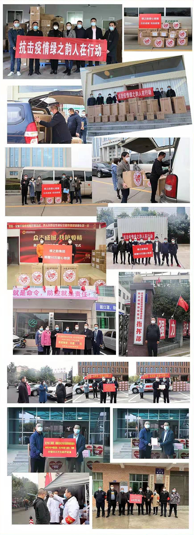2020年新冠疫情期間,在綠之韻集團(tuán)董事總裁、綠之韻公益基金會理事長勞嘉,綠之韻黨委書記劉云等巾幗女性帶領(lǐng)下,成立黨員及愛心志愿者專門隊伍,一方面通過國內(nèi)外各種渠道、積極盡辦法籌措口罩、防護(hù)服、護(hù)目鏡等緊缺物資,多批次捐贈近200萬元愛心款物,竭力援助湖北湖南抗擊疫情;另一方面集團(tuán)公司黨委、工會、公益基金會、全國分公司、各下屬機構(gòu)上下聯(lián)動,積極向員工及市場伙伴普及防控知識,把員工、事業(yè)伙伴、消費者的生命健康放在第一位,以責(zé)任和大愛,與全國人民一起堅決打贏這場疫情防控戰(zhàn)。
