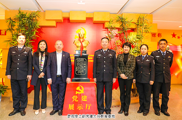 2021年4月13日,長沙市公安局知識產(chǎn)權(quán)犯罪偵查支隊支隊長鄭志帶領(lǐng)法制專干李春來,民警王陽生、周丹一行蒞臨綠之韻集團調(diào)研指導。綠之韻集團副總裁胡均安,黨委書記劉云,總裁助理蔣文全程陪同調(diào)研。
