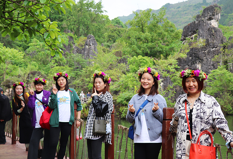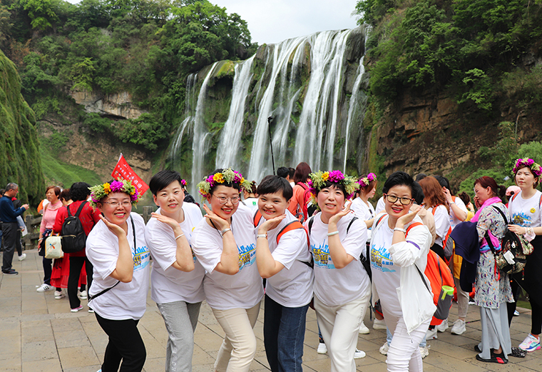 4月27日,綠之韻家人們來到了國(guó)家5A級(jí)風(fēng)景區(qū)黃果樹景區(qū)。黃果樹景區(qū)集石、樹、山、水、林、洞為一體,是喀斯特地貌的典型代表。綠之韻家人們首先游覽的是黃果樹瀑布群中瀑面最寬的陡坡塘瀑布,這里曾是經(jīng)典電視劇《西游記》中唐僧師徒4人途經(jīng)高老莊的外景拍攝地。隨后,綠之韻家人們來到了亞洲最大的瀑布——黃果樹大瀑布。黃果樹瀑布高77.8米,主瀑高67米,寬101米,主瀑頂寬83.3米。綠之韻家人們沿著山路而下,聽著不絕于耳的水聲,瀑布帶來的水汽撲面而來。隔得近了,“飛流直下三千尺”的陣勢(shì)已經(jīng)通過巨大的水聲和遠(yuǎn)遠(yuǎn)可見的身影讓人深深嘆服。遠(yuǎn)處的瀑布在飛流直下,近處的河流裹夾著山土在洶涌,在旋轉(zhuǎn),在奔騰向前,河面寬闊,濤濤不絕。