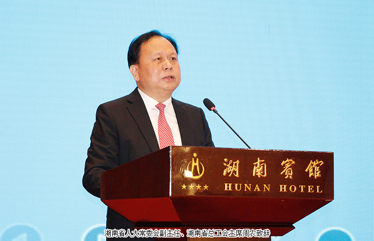 大會(huì)由中共湖南省委副書記、省長(zhǎng)毛偉明主持。會(huì)議伊始,湖南省人大常委會(huì)副主任、黨組成員,湖南省總工會(huì)主席周農(nóng)致辭。他表示,在湖南省委省政府的堅(jiān)強(qiáng)領(lǐng)導(dǎo)下,全省工人階級(jí)和廣大勞動(dòng)群眾堅(jiān)定地沿著習(xí)近平總書記指引的方向,在實(shí)施三高四新戰(zhàn)略建設(shè)現(xiàn)代化新湖南的主戰(zhàn)場(chǎng)上揮灑汗水,在抗擊新冠肺炎疫情、落實(shí)長(zhǎng)效防控的一線經(jīng)受考驗(yàn),在守護(hù)一湖四水、推進(jìn)生態(tài)文明建設(shè)中拼搏奉獻(xiàn),在決勝全面小康打贏脫貧攻堅(jiān)的決戰(zhàn)中勇挑重?fù)?dān),在重點(diǎn)工程、重大項(xiàng)目中大顯身手,在各行各業(yè)的本職崗位上施展才華、建功立業(yè),為全省經(jīng)濟(jì)社會(huì)高質(zhì)量發(fā)展做出了積極的貢獻(xiàn)。展望未來(lái),十四五藍(lán)圖已經(jīng)繪就,新的征程已經(jīng)開始,讓我們深入學(xué)習(xí)貫徹習(xí)近平新時(shí)代中國(guó)特色社會(huì)主義思想,從黨的百年歷史中汲取砥礪奮進(jìn)的精神力量,把個(gè)人夢(mèng)想融入中華民族的復(fù)興夢(mèng),堅(jiān)定不移聽黨話,矢志不渝跟黨走。大力弘揚(yáng)勞模精神、勞動(dòng)精神、工匠精神,以主人公的姿態(tài)積極投身三高四新的火熱事業(yè),發(fā)揮工人階級(jí)主力軍的作用,為奮力譜寫新時(shí)代堅(jiān)持和發(fā)展中國(guó)特色社會(huì)主義的湖南新篇章中作出工農(nóng)階級(jí)的新的偉大貢獻(xiàn)。