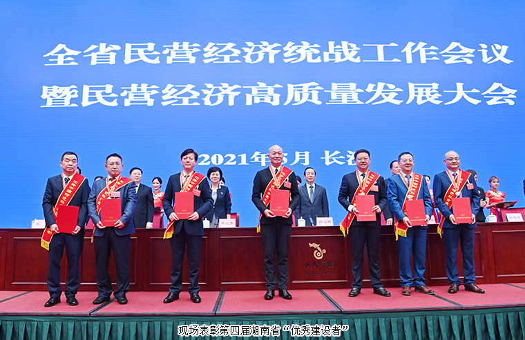 2021年5月28日下午,湖南省民營(yíng)經(jīng)濟(jì)統(tǒng)戰(zhàn)工作會(huì)議暨民營(yíng)經(jīng)濟(jì)高質(zhì)量發(fā)展大會(huì)在長(zhǎng)沙召開。會(huì)議深入學(xué)習(xí)貫徹習(xí)近平總書記關(guān)于民營(yíng)經(jīng)濟(jì)的重要講話指示精神,全面落實(shí)關(guān)于加強(qiáng)新時(shí)代民營(yíng)經(jīng)濟(jì)統(tǒng)戰(zhàn)工作的意見和全國(guó)民營(yíng)經(jīng)濟(jì)統(tǒng)戰(zhàn)工作會(huì)議精神,表彰第四屆湖南省“優(yōu)秀建設(shè)者”,交流民營(yíng)經(jīng)濟(jì)統(tǒng)戰(zhàn)工作經(jīng)驗(yàn),為促進(jìn)民營(yíng)經(jīng)濟(jì)高質(zhì)量發(fā)展、建設(shè)現(xiàn)代化新湖南凝心聚力。