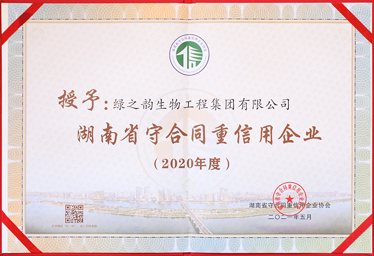 “湖南省守合同重信用”企業(yè)公示活動(dòng),旨在推進(jìn)湖南省社會(huì)信用體系建設(shè),引導(dǎo)市場(chǎng)主體建立科學(xué)、合理的合同與信用管理機(jī)制,服務(wù)全省經(jīng)濟(jì)發(fā)展,表彰企業(yè)在信用管理體系、合同制度管理、合約履行能力以及企業(yè)社會(huì)信譽(yù)等方面所取得的成績。綠之韻連續(xù)多年來被評(píng)為湖南省“守合同重信用”企業(yè)是政府部門、社會(huì)各界對(duì)公司信用價(jià)值理念和誠信服務(wù)實(shí)踐的充分肯定。