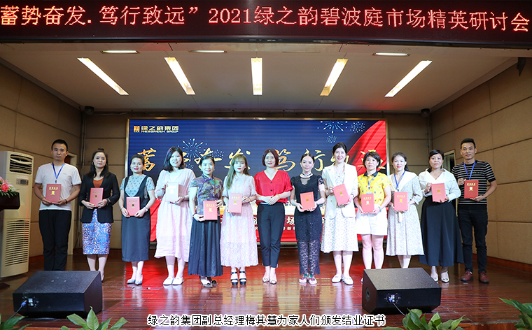 2021年6月16-19日,綠之韻碧波庭“蓄勢奮發(fā) 篤行致遠”市場精英研討會在長沙成功舉行。綠之韻集團董事長胡國安,董事總裁勞嘉,副總裁胡均安,副總經(jīng)理梅其慧,綠之韻集團副總經(jīng)理、綠之韻碧波庭總經(jīng)理黃莎莎等領(lǐng)導(dǎo)嘉賓出席活動,與100多位碧波庭優(yōu)秀市場精英歡聚一堂,共話未來發(fā)展大計。