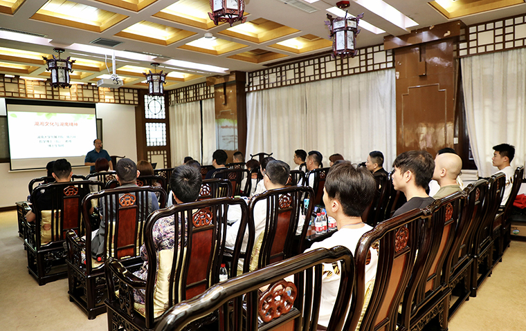 “岳麓書院作為中國歷史上四大書院之一,歷經(jīng)千年而弦歌不絕,學(xué)脈延綿……”在講解員的解說中,綠之韻家人們來到岳麓書院參觀,了解岳麓書院演變延續(xù)過程及湖湘文化典故,感受到了岳麓書院作為千年學(xué)府的獨特魅力和文化底蘊。湖南大學(xué)岳麓書院教授陳力祥在岳麓書院的文昌閣為大家?guī)怼逗嫖幕c精神》的主題演講,讓在場的綠之韻家人們深受湖湘文化的精神洗禮。