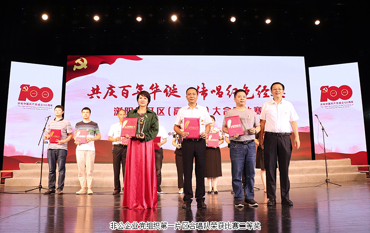 為隆重紀(jì)念中國共產(chǎn)黨成立100周年,回顧黨的光輝歷史,謳歌黨的豐功偉績,讓紅色基因、革命薪火代代相傳,2021年6月25日,瀏陽經(jīng)開區(qū)(高新區(qū))“共慶百年華誕 傳唱紅色經(jīng)典”大合唱比賽在金陽文化藝術(shù)中心舉行。瀏陽經(jīng)開區(qū)(高新區(qū))黨工委副書記、管委會主任談文昌,瀏陽市委黨史學(xué)習(xí)教育巡回指導(dǎo)組第一組組長龍春湘,瀏陽經(jīng)開區(qū)(高新區(qū))黨工委委員、管委會副主任何六生,黨工委委員、管委會副主任羅其勝,黨工委委員、紀(jì)工委書記、監(jiān)察工委主任肖賽男,黨工委委員、管委會副主任唐建國,瀏陽經(jīng)開區(qū)(高新區(qū))管委會調(diào)研員胡漢圣等領(lǐng)導(dǎo)出席活動。綠之韻及東風(fēng)藥業(yè)、永清環(huán)保、施比龍組成的瀏陽經(jīng)開區(qū)企業(yè)黨組織第一片區(qū)合唱隊參與比賽,并獲得合唱比賽二等獎。