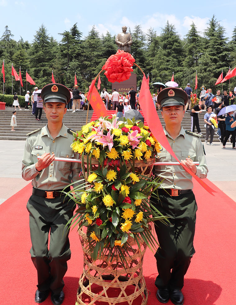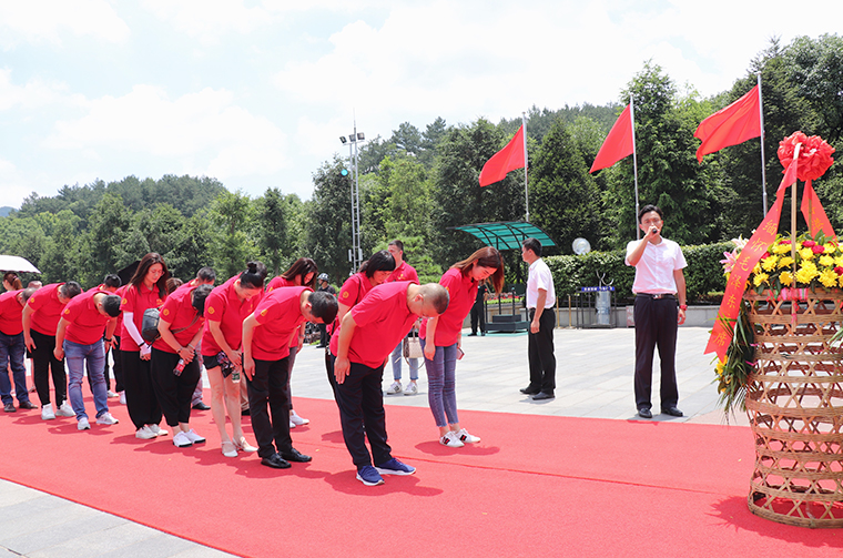 在現(xiàn)場工作人員的帶領(lǐng)下,一行人來到毛澤東銅像廣場,瞻仰偉大的毛主席。毛主席銅像立于高高的紅色花崗巖石基座上,背靠韶峰,主席身軀偉岸,手握書卷,雙眼炯炯有神,面帶微笑地注視遠方。大家表情莊嚴肅穆,整齊有序地排著隊列,懷著無比崇敬的心情,向毛主席銅像敬獻花籃,每個人都自發(fā)自覺地用自己的方式懷念著這位偉大的領(lǐng)袖。