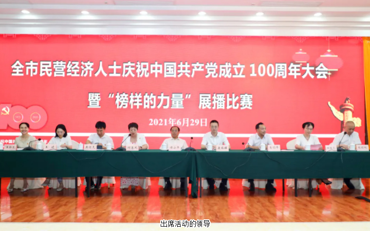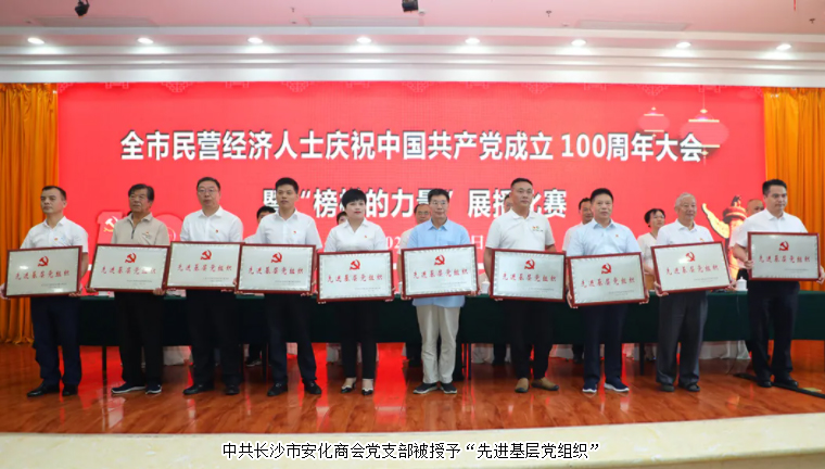 為進(jìn)一步激發(fā)商協(xié)會(huì)組織活力,激發(fā)民營(yíng)經(jīng)濟(jì)人士愛(ài)國(guó)熱情,引領(lǐng)民營(yíng)經(jīng)濟(jì)人士聽(tīng)黨話、跟黨走,2021年6月29日,長(zhǎng)沙市民營(yíng)經(jīng)濟(jì)人士慶祝建黨100周年大會(huì)暨“榜樣的力量”展播比賽舉行。中共長(zhǎng)沙市委常委、統(tǒng)戰(zhàn)部部長(zhǎng)譚小平,統(tǒng)戰(zhàn)部副部長(zhǎng)、市工商聯(lián)黨組書(shū)記何惠風(fēng),長(zhǎng)沙市工商聯(lián)主席康鎮(zhèn)麟等領(lǐng)導(dǎo)出席會(huì)議。長(zhǎng)沙市安化商會(huì)會(huì)長(zhǎng)、綠之韻集團(tuán)董事長(zhǎng)胡國(guó)安受邀參加會(huì)議。
