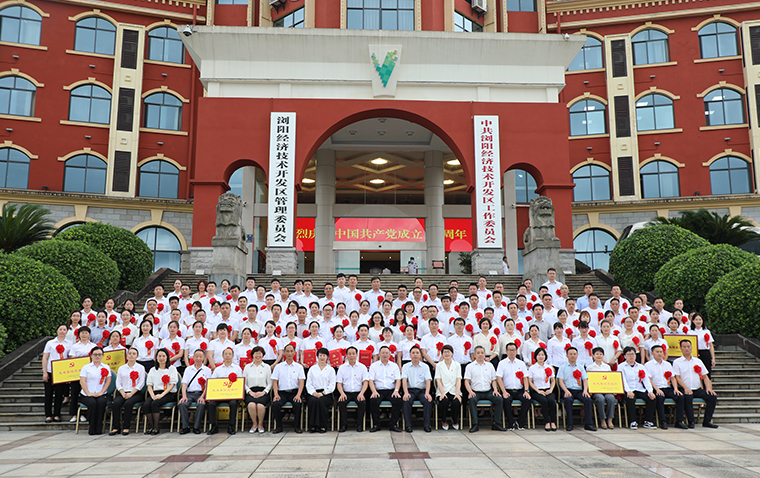 2021年6月30日,瀏陽經(jīng)開區(qū)(高新區(qū))優(yōu)秀共產(chǎn)黨員、優(yōu)秀黨務工作者和先進基層黨組織表彰大會在金陽文化藝術中心召開。瀏陽經(jīng)開區(qū)(高新區(qū))黨工委副書記、管委會主任談文昌,黨工委委員、管委會副主任何六生,黨工委委員、管委會副主任羅其勝,黨工委委員、紀工委書記肖賽男等領導出席會議。綠之韻集團黨委書記劉云帶領集團優(yōu)秀黨員代表參加會議。