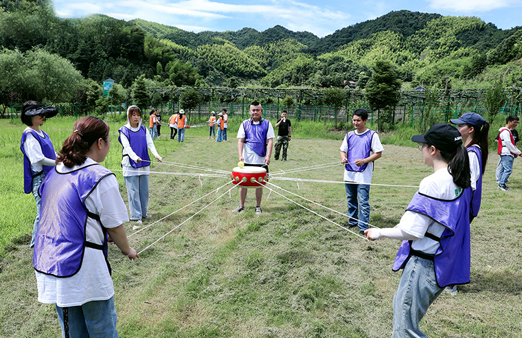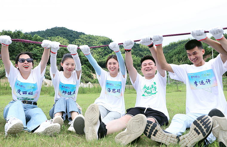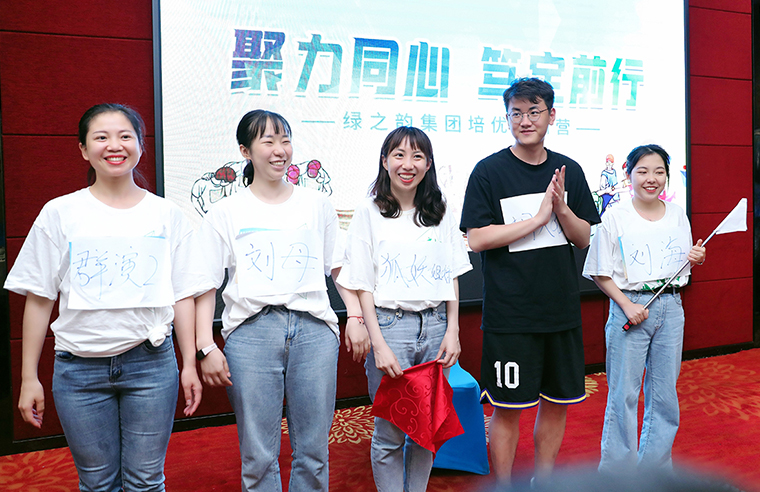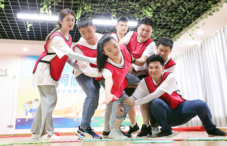 在接下來的體驗式拓展培訓課程中,學員們共分為三組,分別為“人和隊”、“天韻隊”和“精英隊”,并選派出小組組長。三組團隊都特別準備了團隊口號和隊形展示。緊接著,各位學員精神抖擻、士氣高昂、摩拳擦掌,在素質(zhì)拓展活動中積極展現(xiàn)團隊風采,先后進行了“鼓動人心”、“流浪地球”、“極速傳真”、“動力繩圈”等多項團隊協(xié)作項目,深刻地體會到了團結(jié)協(xié)作、尊重規(guī)矩法則和挑戰(zhàn)自我極限的重要性,極大增強了團隊凝聚力和學員們對綠之韻大家庭的歸屬感和向心力。
