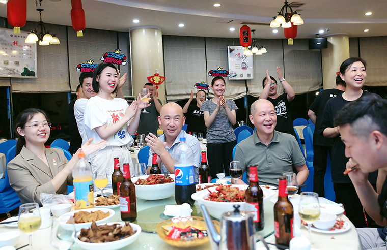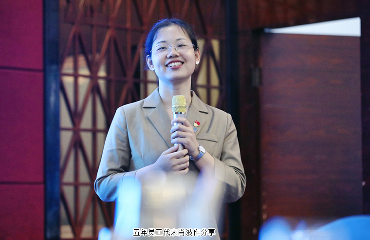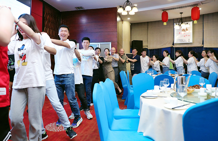晚上的分享聯(lián)歡會也是熱鬧非凡。集團公司的五年、十年員工代表作工作經(jīng)驗分享。《劉??抽浴非榫皠 ⅰ断嘈抛约骸泛铣?、《綠韻青年》詩朗誦……各小組精心準備的團隊節(jié)目掀起了晚會一次次高潮,現(xiàn)場不斷響起熱烈的掌聲和歡呼,成為一片歡樂的海洋。