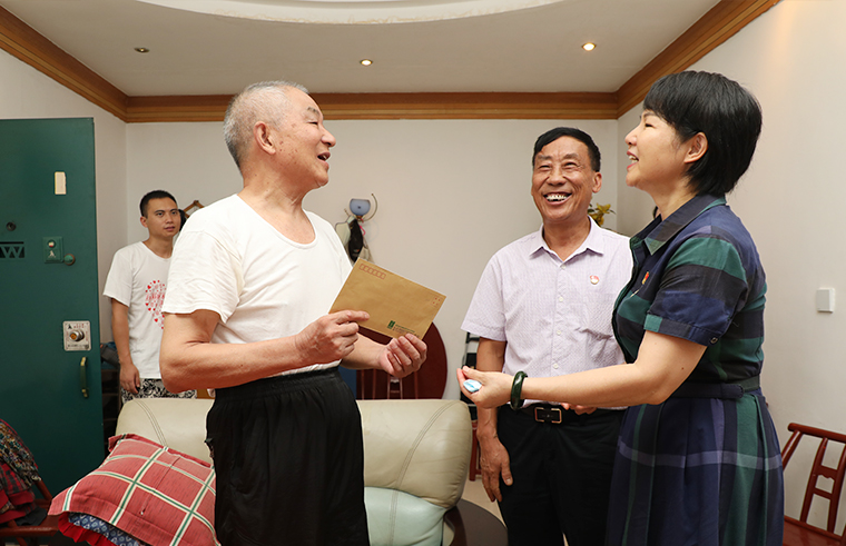 為進(jìn)一步弘揚(yáng)擁軍優(yōu)屬的光榮傳統(tǒng),關(guān)愛(ài)退伍老兵,在“八一”建軍節(jié)來(lái)臨之際,綠之韻集團(tuán)黨委開(kāi)展走訪(fǎng)慰問(wèn)退伍老兵活動(dòng)。綠之韻集團(tuán)黨委書(shū)記劉云、工會(huì)主席兼集團(tuán)辦公室行政總監(jiān)馮紅、黨委副書(shū)記許達(dá)仲帶領(lǐng)著就職于集團(tuán)的十余名退伍軍人前往瀏陽(yáng)市洞陽(yáng)鎮(zhèn),向當(dāng)?shù)赝宋槔媳蜕衔繂?wèn)金和濃濃的節(jié)日祝福,感謝他們?yōu)閲?guó)家和人民所作出的貢獻(xiàn)。