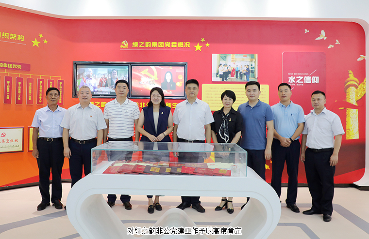 調(diào)研組一行先后參觀了綠之韻國際會議中心多功能形象展示廳和黨建文化教育基地,并對綠之韻非公黨建工作予以高度肯定。