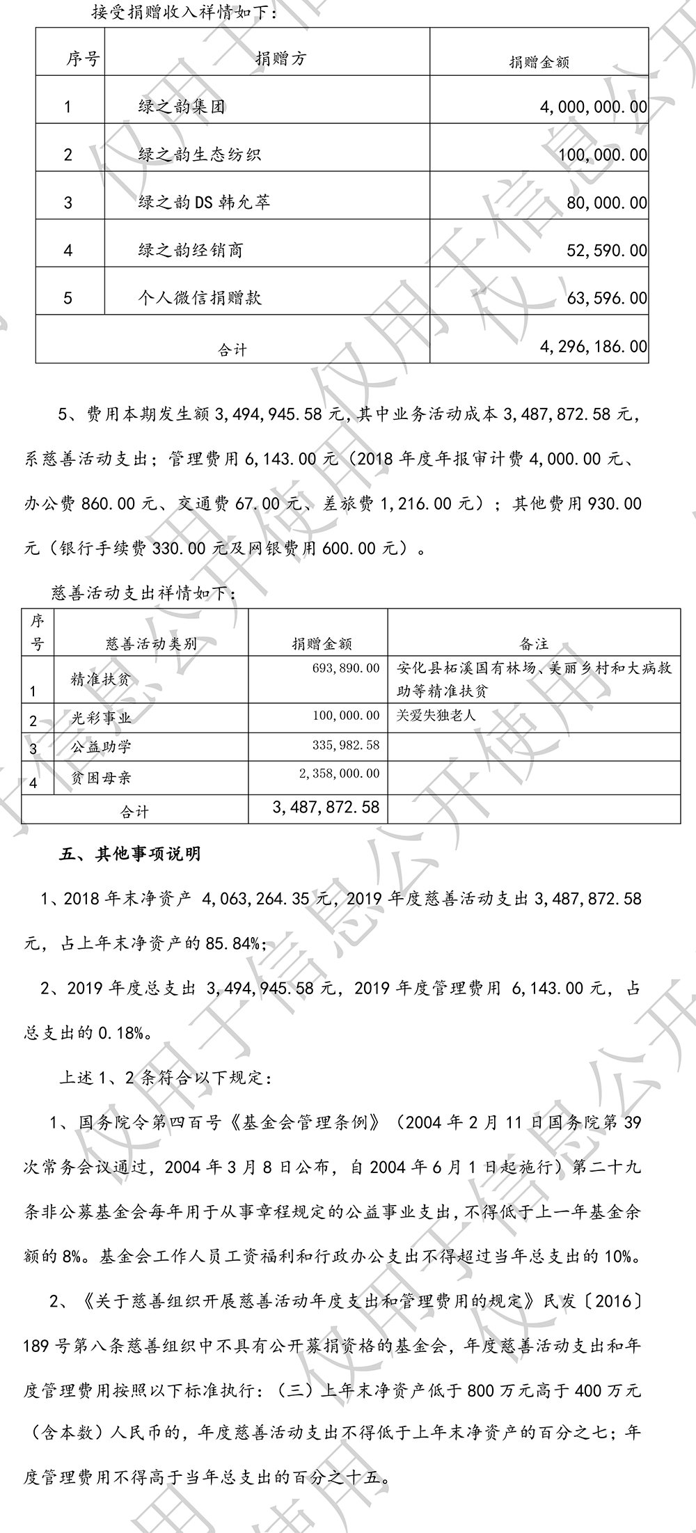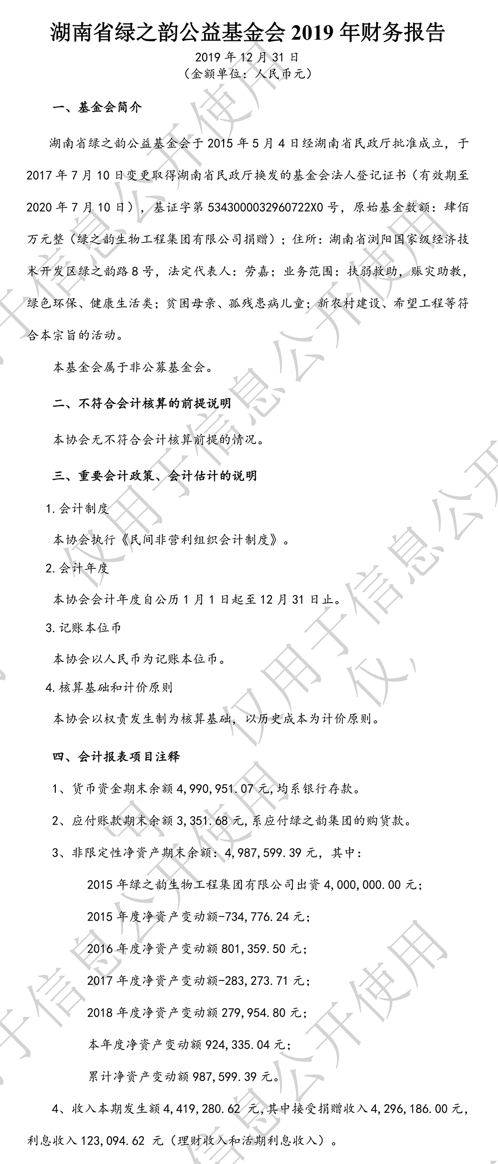 湖南省綠之韻公益基金會(huì)2019年財(cái)務(wù)報(bào)告