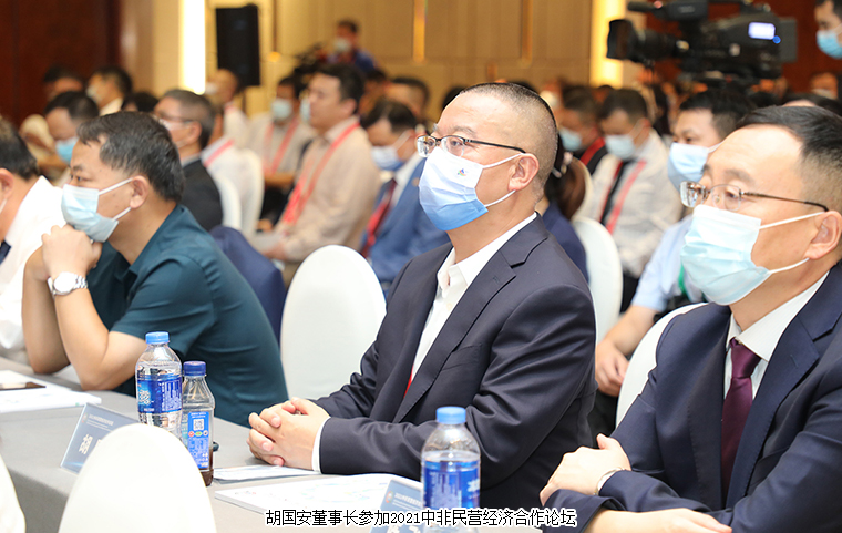 27日下午,胡國安董事長受邀參加2021中非民營經(jīng)濟合作論壇。全國政協(xié)副主席、中華全國工商業(yè)聯(lián)合會主席高云龍,塞內(nèi)加爾經(jīng)濟、社會和環(huán)境理事會 第一副主席巴伊迪·艾格尼,湖南省委副書記、省長毛偉明,全國工商聯(lián)黨組成員、副主席邱小平,外交部非洲司司長吳鵬,商務(wù)部西亞非洲司一級巡視員謝亞靜,中非民間商會會長汪力成,湖南省委常委、統(tǒng)戰(zhàn)部部長黃蘭香,湖南省政協(xié)副主席、 省工商聯(lián)主席張健等領(lǐng)導(dǎo)嘉賓出席活動。