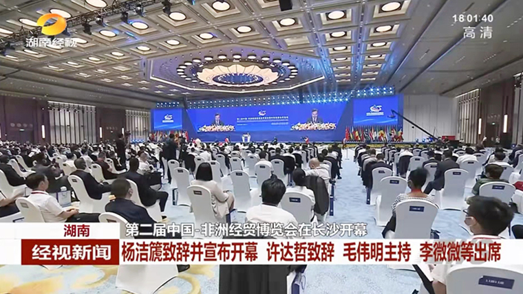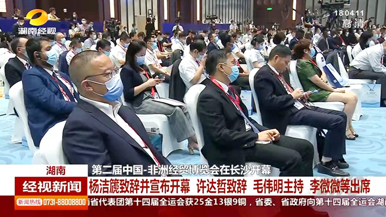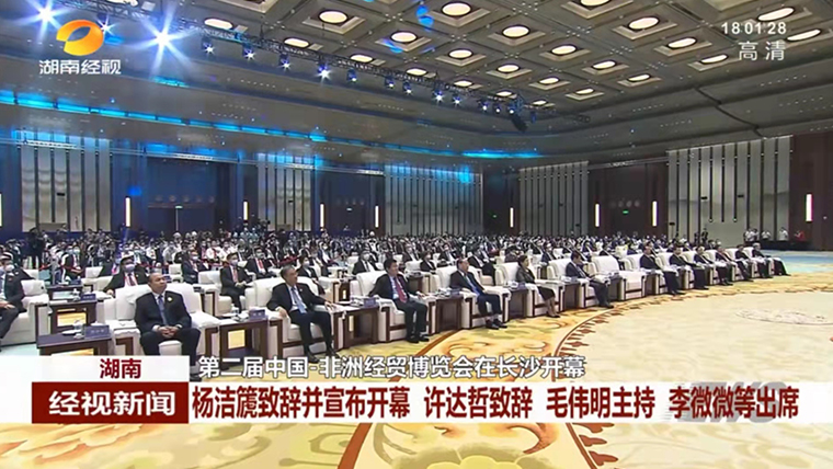 湖南省委書記、省人大常委會主任許達哲出席開幕式并致辭。他說,習(xí)近平主席指出,中非永遠是好朋友、好伙伴、好兄弟,是休戚與共的命運共同體和合作共贏的利益共同體。近年來,湖南認真貫徹習(xí)近平主席重要講話指示精神,以辦好中非經(jīng)貿(mào)博覽會、建設(shè)好湖南自貿(mào)試驗區(qū)為抓手,推動湘非合作高質(zhì)量發(fā)展邁出了堅實步伐。本屆博覽會以“新起點、新機遇、新作為”為主題,必將有力促進中非經(jīng)貿(mào)合作向更高水平、更寬領(lǐng)域、更深層次發(fā)展。湖南將以此為契機,圍繞落實中非合作論壇北京峰會“八大行動”加強對接,突出發(fā)展為要、深化健康合作、促進民心相通,積極探索湘非合作新路徑、開辟合作增長點,和各方共同辦好永不閉幕的中非經(jīng)貿(mào)博覽會,為打造合作共贏、安全共筑、文化共興的中非命運共同體貢獻湖南力量。