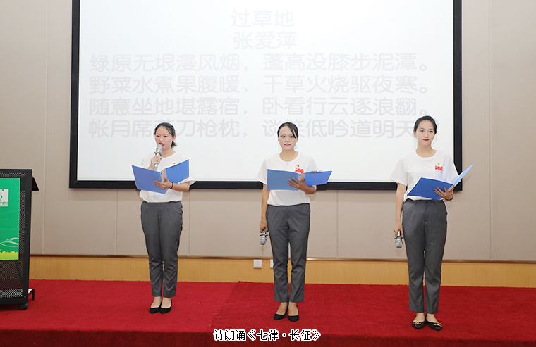 “偉大長征精神,就是把全國人民和中華民族的根本利益看得高于一切,堅定革命的理想和信念,堅信正義事業(yè)必然勝利的精神。”二支部黨員們激情彭拜的朗誦著《過草地》《清平樂·六盤山》《憶秦娥·婁山關(guān)》《七律·長征》等詩歌,帶領(lǐng)與會黨員共同追憶黨的紅色歲月,感受中華詩詞文化的深厚底蘊,陶冶愛國情懷,深深感悟到身為中華兒女的驕傲與自豪。