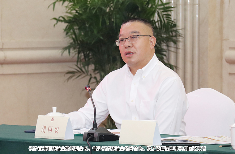 2021年9月30日,由長沙市海外聯(lián)誼會、長沙“僑夢苑”主辦的長沙市港澳臺僑代表人士座談會在長沙召開。中共長沙市委常委、統(tǒng)戰(zhàn)部長何朝暉,長沙市委統(tǒng)戰(zhàn)部副部長、市僑辦主任饒福明,長沙市委統(tǒng)戰(zhàn)部港澳臺處四級調(diào)研員李燁出席會議。長沙市海外聯(lián)誼會常務(wù)副會長、香港長沙聯(lián)誼會名譽會長、綠之韻集團董事長胡國安受邀參加會議,與全市重點港澳僑企代表歡聚一堂、共敘情誼、共謀發(fā)展。