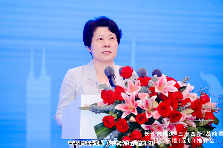 會(huì)議伊始,中共湖南省委常委、長(zhǎng)沙市委書記吳桂英致辭。吳桂英在致辭中介紹,長(zhǎng)沙是湖南省會(huì)、長(zhǎng)江經(jīng)濟(jì)帶中心城市和“一帶一路”重要節(jié)點(diǎn)城市,歷史文化悠久、紅色底蘊(yùn)深厚、自然風(fēng)光秀美、交通區(qū)位便捷、發(fā)展活力迸發(fā)。去年9月,習(xí)近平總書記親臨湖南、深入長(zhǎng)沙考察,為我們擘畫了“三高四新”的宏偉藍(lán)圖。在黨中央、國(guó)務(wù)院和省委、省政府的堅(jiān)強(qiáng)領(lǐng)導(dǎo)下,長(zhǎng)沙牢記殷殷囑托、扛起重大使命責(zé)任,堅(jiān)定不移推進(jìn)“三高四新”戰(zhàn)略,全力當(dāng)好領(lǐng)頭雁、建設(shè)示范區(qū),矢志不渝沿著習(xí)近平總書記指引的方向闊步前行。吳桂英說,一年來,在“三高四新”指引下,我們奮力搶抓發(fā)展新機(jī)遇、奮力積蓄發(fā)展新動(dòng)能、奮力開創(chuàng)發(fā)展新局面,著力在全球創(chuàng)特色、著力在全國(guó)爭(zhēng)先進(jìn)、著力在區(qū)域作示范、著力在全省當(dāng)標(biāo)桿。隨著“雙循環(huán)”格局構(gòu)建、粵港澳大灣區(qū)建設(shè)等戰(zhàn)略拓展深化,深圳與長(zhǎng)沙的聯(lián)系更加緊密,面臨的機(jī)遇更加寶貴,合作的空間更加廣闊。誠(chéng)摯希望各位商界精英、業(yè)界翹楚,以前瞻視野洞察趨勢(shì),以共贏姿態(tài)擁抱機(jī)遇,以戰(zhàn)略眼光布局未來,帶著更多的新項(xiàng)目、好項(xiàng)目、大項(xiàng)目,進(jìn)駐長(zhǎng)沙、投資長(zhǎng)沙、建設(shè)長(zhǎng)沙。熱忱歡迎大家多到長(zhǎng)沙走一走、看一看,領(lǐng)略山水洲城的獨(dú)特風(fēng)貌,品味歷史名城的人文情懷,體驗(yàn)快樂長(zhǎng)沙的精彩魅力,感知廣闊美好的發(fā)展前景。我們將竭力做好接待服務(wù)工作,促進(jìn)雙方密切交流、深化合作,共創(chuàng)更加美好的未來。