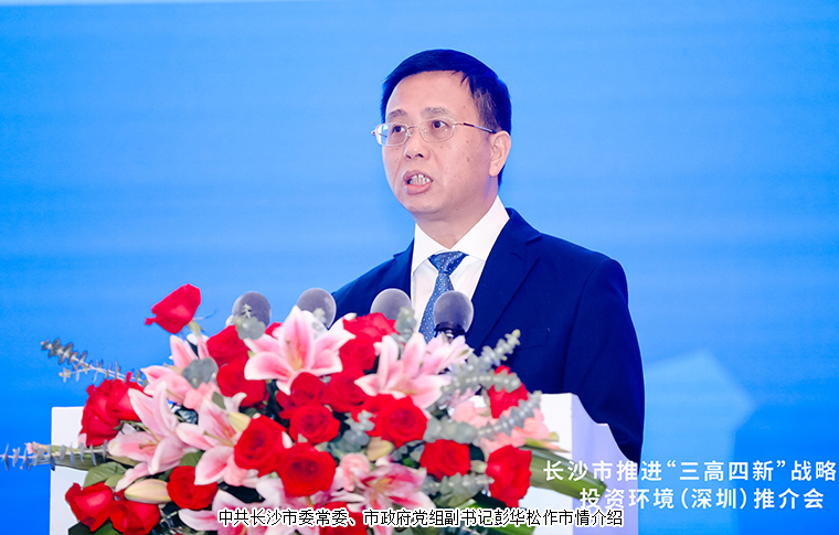 會(huì)上,中共長(zhǎng)沙市委常委,市政府黨組副書記彭華松從宜居福地、智造基地、開放高地、創(chuàng)新勝地、投資洼地5個(gè)方面作長(zhǎng)沙市情推介,邀請(qǐng)企業(yè)家到長(zhǎng)沙觀光指導(dǎo)、考察洽談、投資興業(yè)。