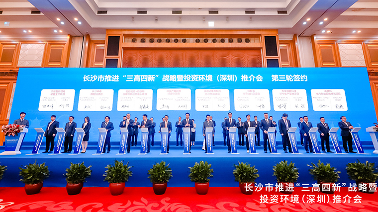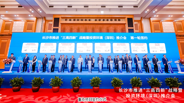 在推介活動(dòng)期間,共有51個(gè)項(xiàng)目簽約,總投資623億元,在推介會(huì)現(xiàn)場(chǎng)簽約項(xiàng)目24個(gè),成果項(xiàng)目27個(gè)。另外,來自粵港澳大灣區(qū)投資方的項(xiàng)目達(dá)到了46個(gè),包括了工業(yè)制造業(yè)和現(xiàn)代服務(wù)業(yè)兩大類別,其中“三類500強(qiáng)”企業(yè)投資項(xiàng)目10個(gè),工業(yè)制造業(yè)項(xiàng)目達(dá)24個(gè)。這些項(xiàng)目的成功簽約,將進(jìn)一步深化長(zhǎng)沙深圳兩地合作,為長(zhǎng)沙奮力實(shí)施“三高四新”戰(zhàn)略、全面推進(jìn)高質(zhì)量發(fā)展注入強(qiáng)勁動(dòng)能。