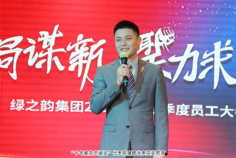在全場熱烈的掌聲中,綠之韻集團董事長胡國安上臺作重要講話。他首先代表集團公司向獲得“五年服務英才獎”“十年服務忠誠獎”的獲獎員工表示熱烈祝賀,并向全體員工的辛勤付出致以誠摯的謝意。他表示,綠之韻成立至今已進入第十九個年頭,企業(yè)的潛心發(fā)展、穩(wěn)步前行,離不開全體綠之韻人披星戴月、矢志不渝、兢兢業(yè)業(yè)地堅守崗位,出色的完成本職工作。綠之韻是一個發(fā)展中的企業(yè),是一個成長型的企業(yè),同時也是一個學習型企業(yè),是大家的,也是每一位綠之韻人的。對于學習,他深知只有通過不斷地艱苦磨練,經歷反復痛苦與歡樂的循環(huán),才能造就豐滿的人生與嶄新的生活。酸甜苦辣的經歷對于綠之韻人來說是一種成長,更是一種收獲,最后都將受益于自己。每一位綠之韻人都有夢想,都希望能成為家人的驕傲,同事們學習的榜樣。展望未來,綠之韻要不斷提升政治站位,堅持黨建引領,以高質量黨建推動企業(yè)高質量發(fā)展。胡總強調,當前,集團的發(fā)展藍圖已經描繪,發(fā)展平臺已經搭建,各項激勵制度不斷完善,各大產業(yè)板塊蓄勢待發(fā),正需要一批勇于拼搏、敢于創(chuàng)新以及和企業(yè)三觀一致的同事們一同攜手,朝著“建百年企業(yè),創(chuàng)世界名牌”企業(yè)愿景向前推進,共同為實現(xiàn)“受人尊敬的企業(yè)”這一目標而勇往直前。他號召所有綠之韻人以一往無前的奮斗姿態(tài),風雨無阻的精神狀態(tài),齊心協(xié)力、擰成一股繩,為綠之韻非凡的明天貢獻自己的力量!